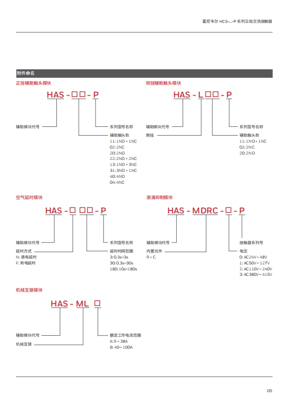 霍尼韋爾 HCS-...-P 系列三極交流接觸器