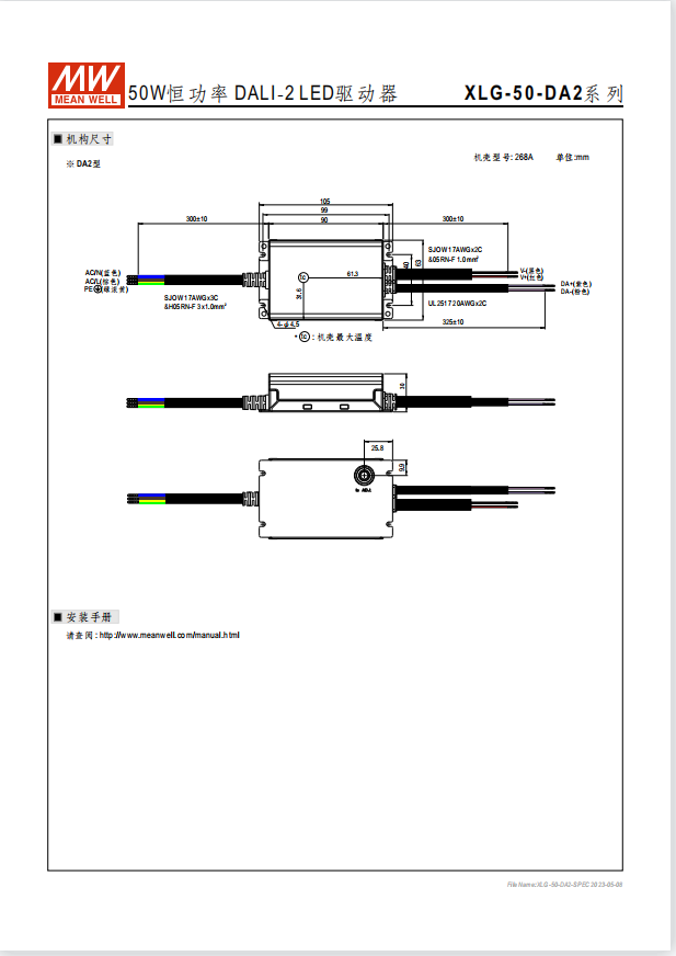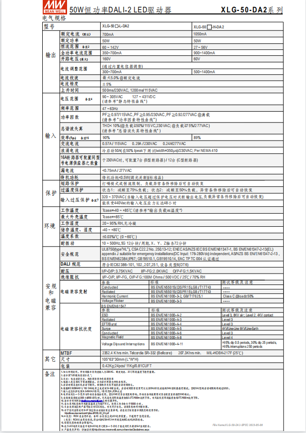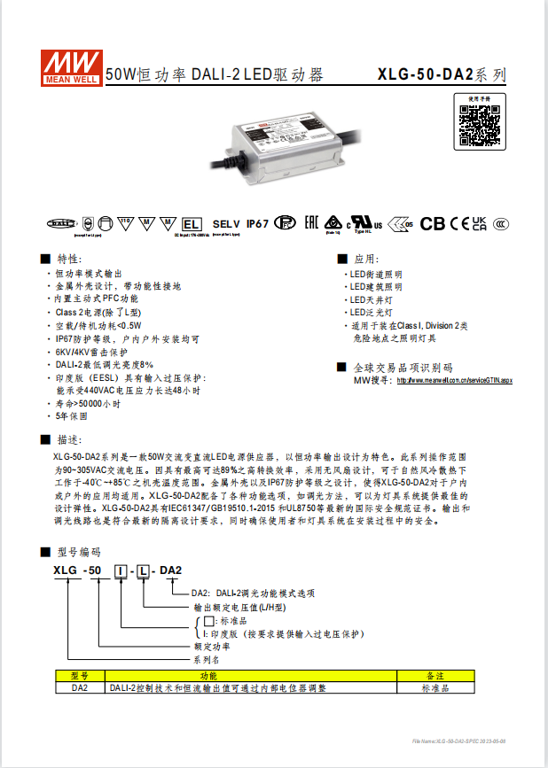 瓦數(shù): 20W~320W 功能特性 寬電壓輸入范圍100~305VAC(XLG-20為90~305VAC)