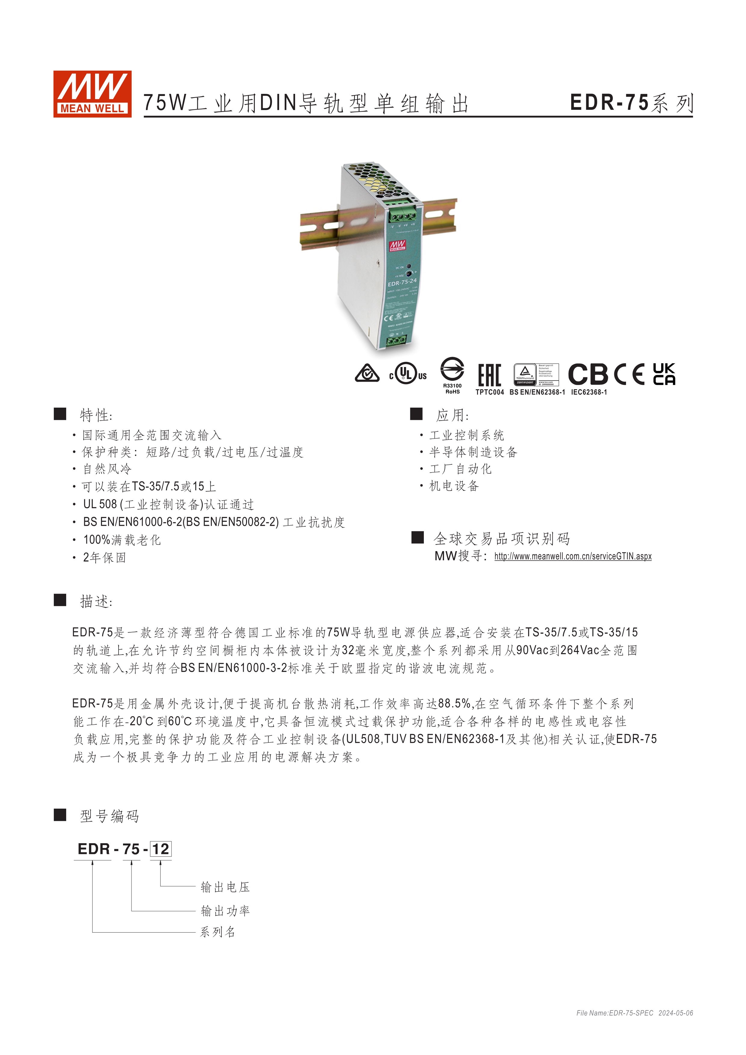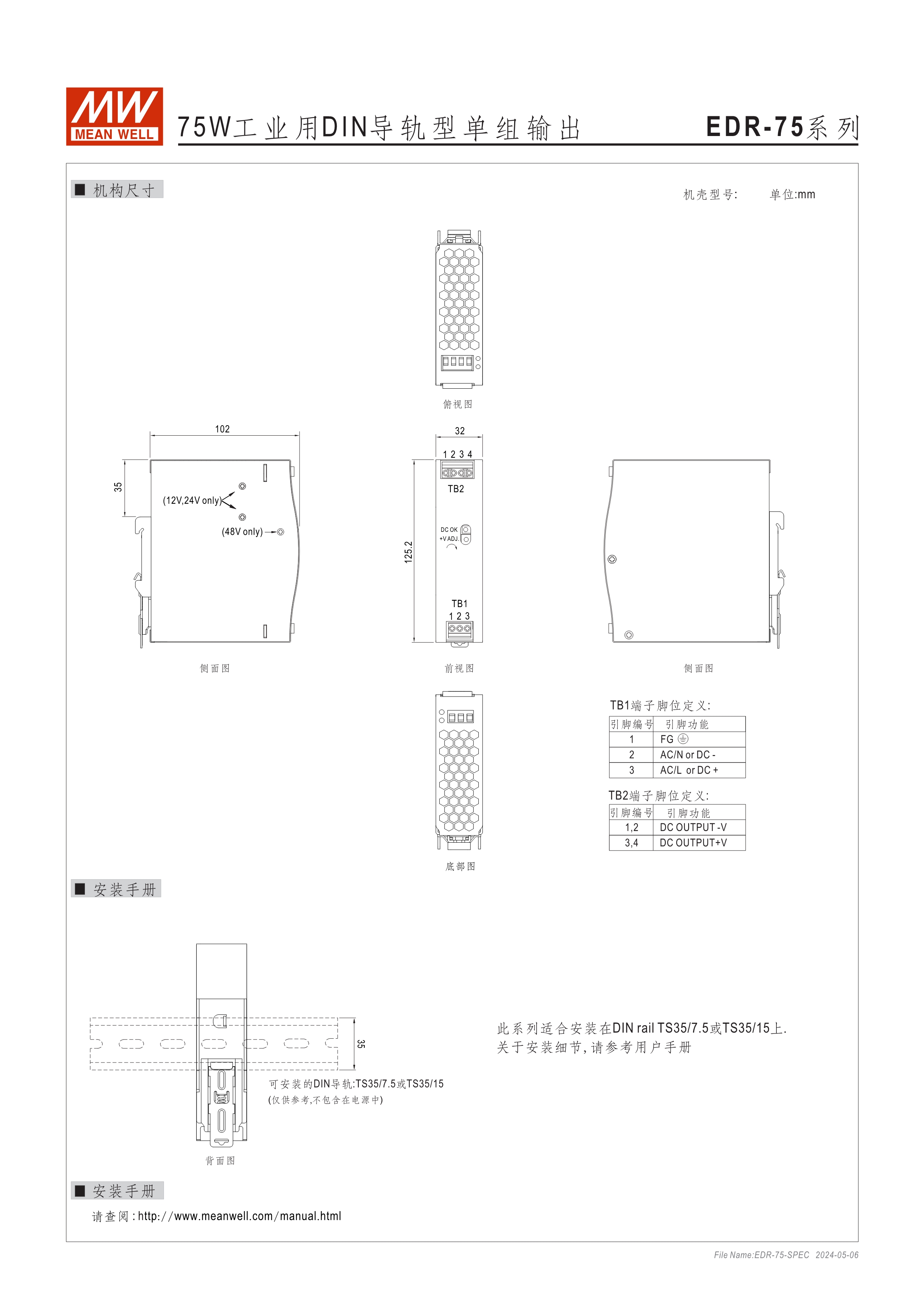 金屬殼,低價(jià)款 單相, 全范圍輸入 窄面寬設(shè)計(jì):32~40mm EMC EN55022 class A 適合安裝于DIN rail TS-35 / 7.5或15 2年保固期