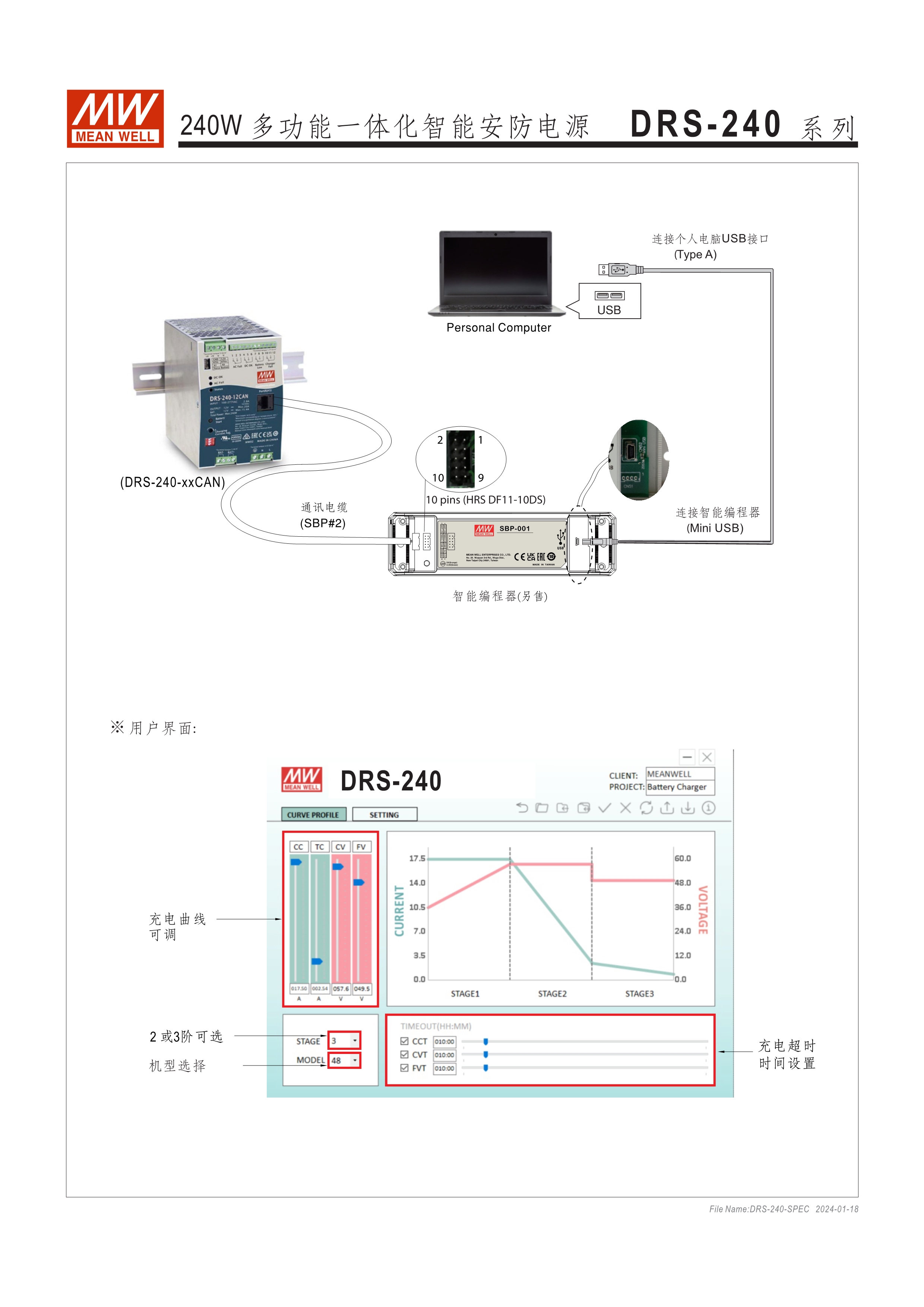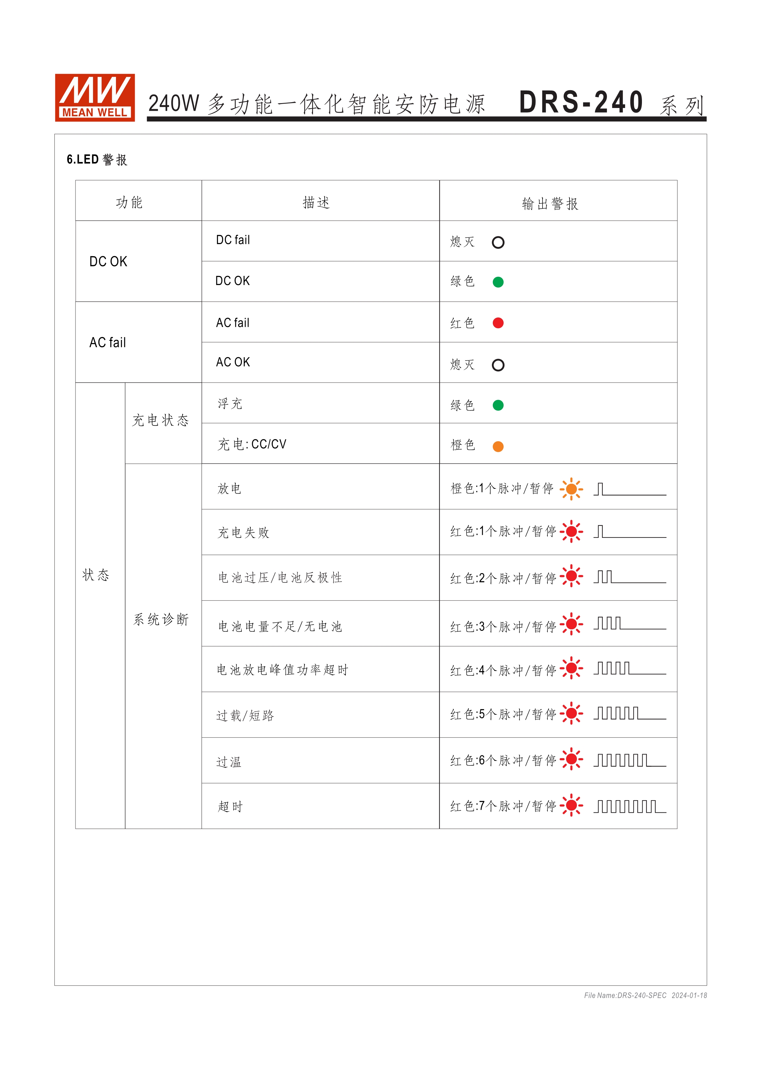 通用輸入90~305VAC(可使用277VAC) 具備電源供應(yīng)器、DC不斷電、電池充電器和狀態(tài)監(jiān)控多合一功能 訊號(hào)警示設(shè)計(jì)符合UL2524, NFPA 1221, BS EN/EN54-4和GB17945 交流故障的Form C繼電器接點(diǎn)和顯示電池不足、充電器故障及DC-OK的LED指示燈 內(nèi)建MODBus通訊協(xié)定,并可選CANBus 可搭配SBP-001編程器調(diào)整充電曲線