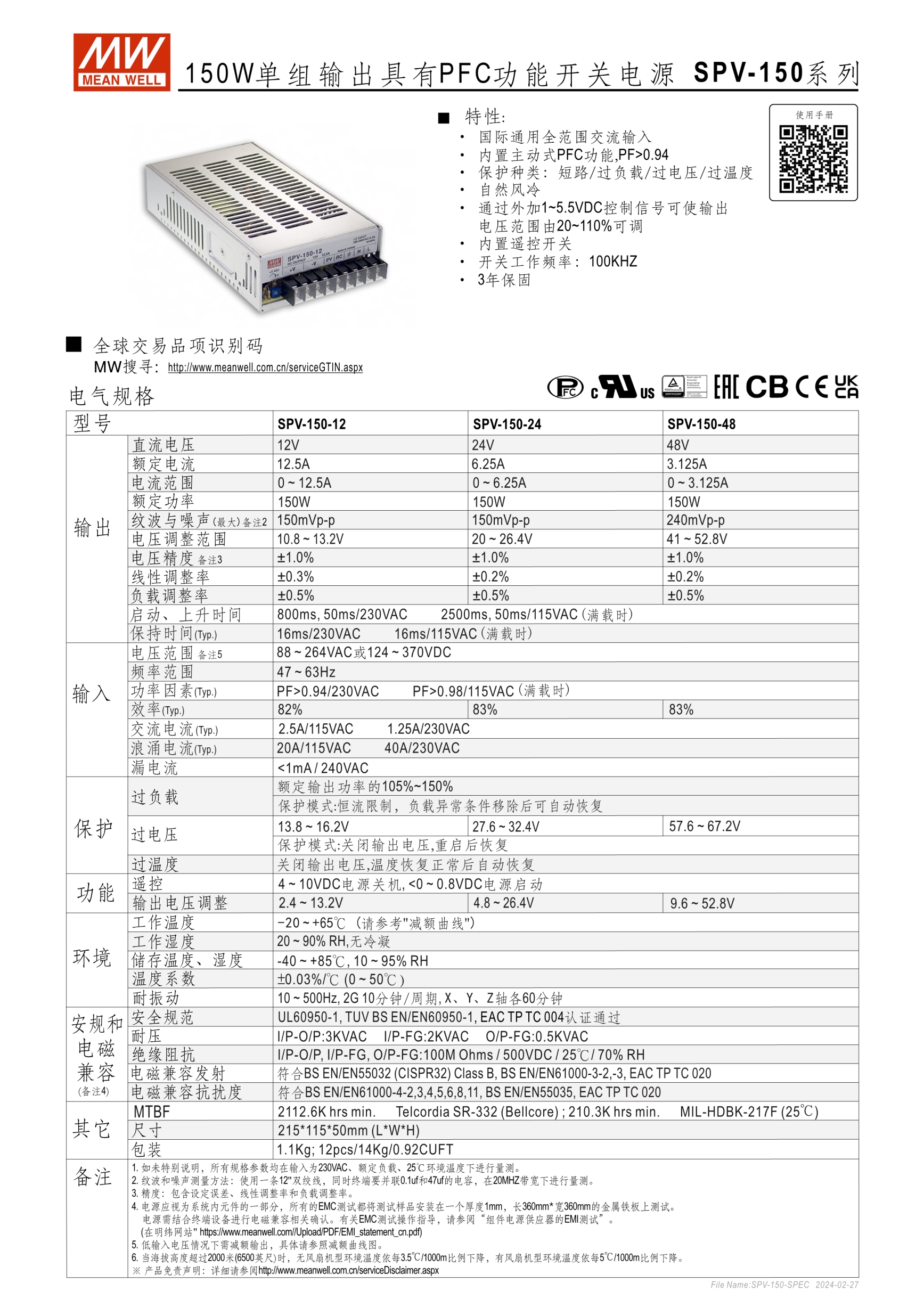 內(nèi)建主動(dòng)式功率因子矯正功能(active PFC) 輸出電壓可調(diào)設(shè)于原額定值的20~110%
