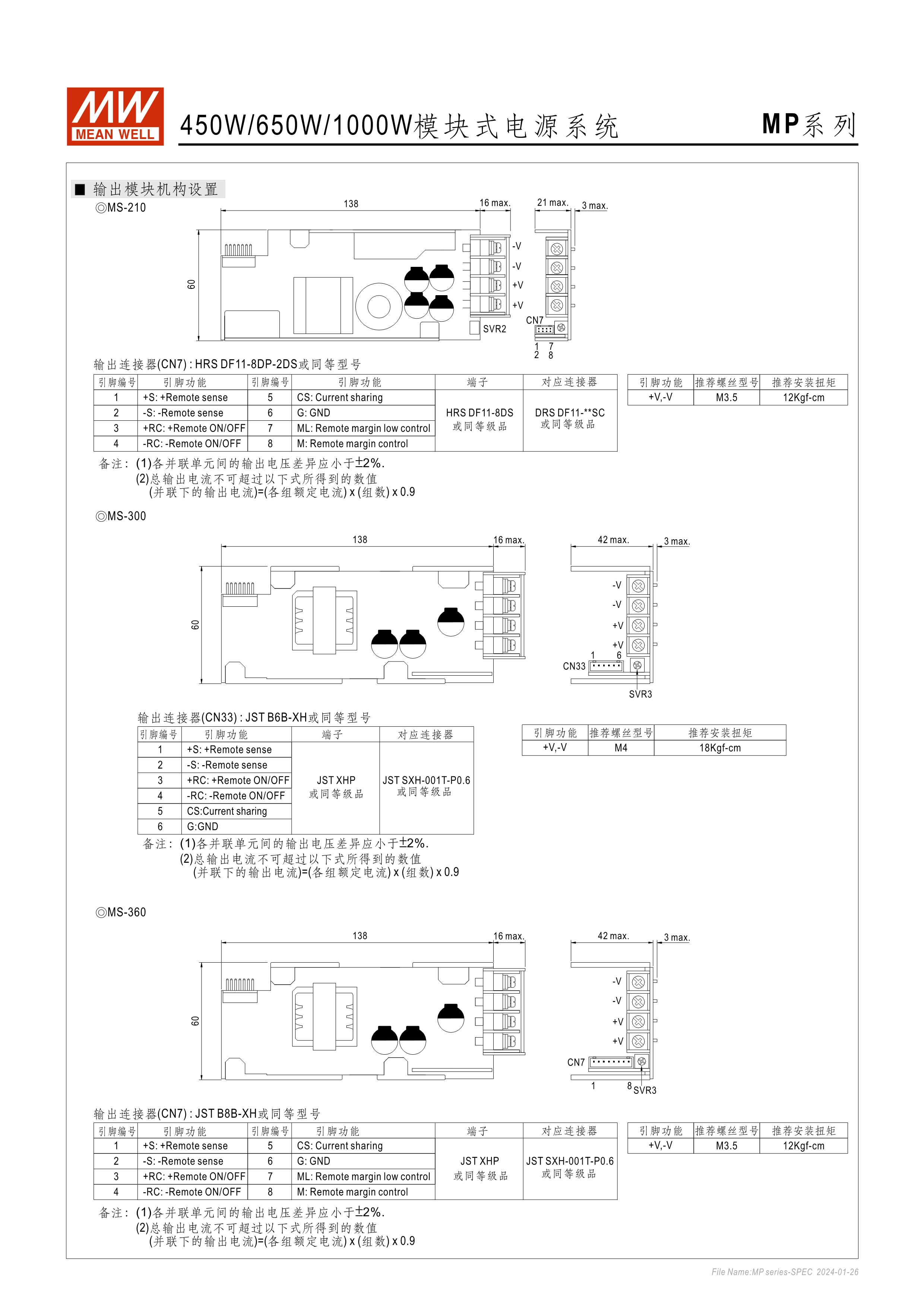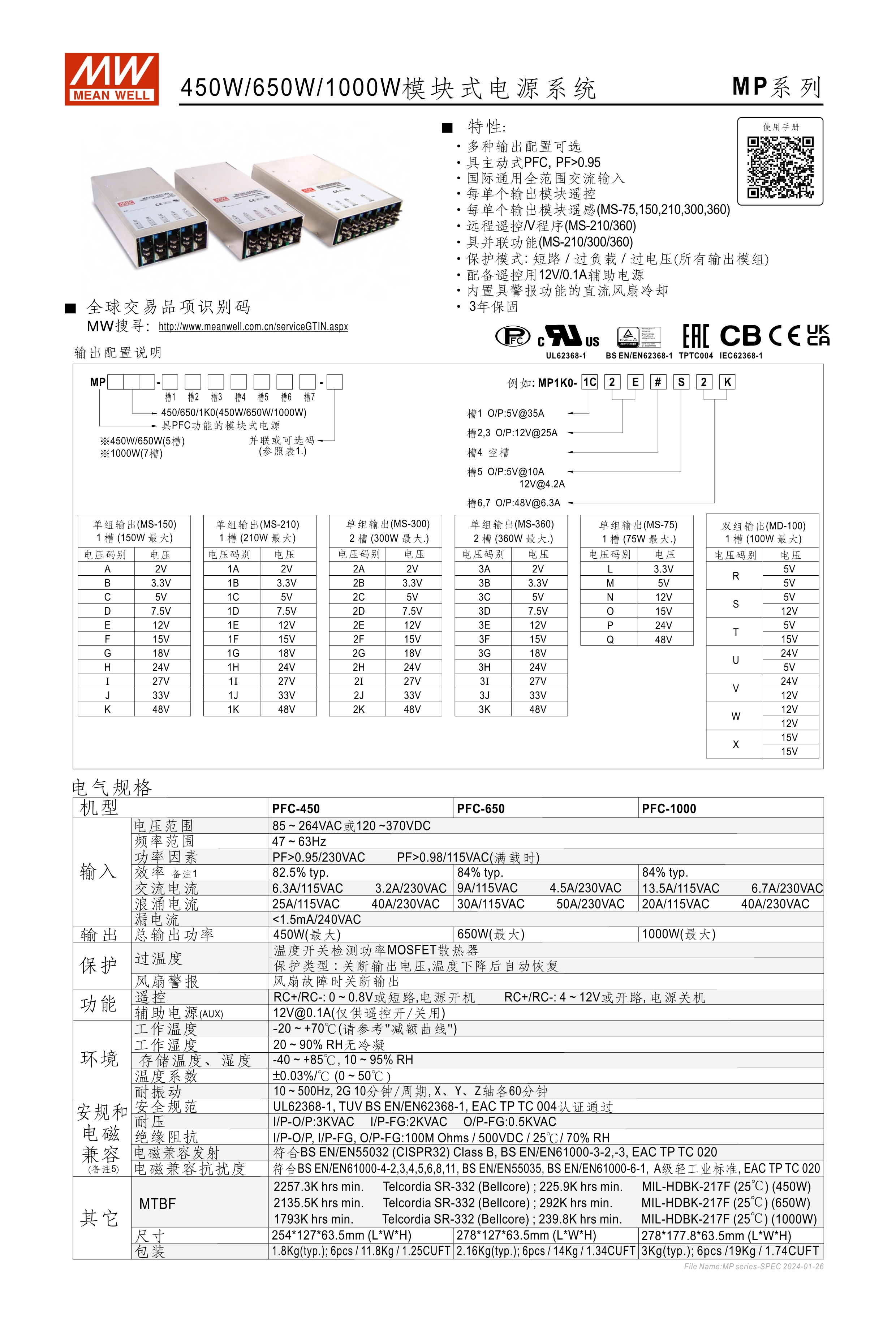 可配置式/可客制調(diào)整/高彈性電源供應(yīng)器 內(nèi)建主動(dòng)式功率因子矯正功能(active PFC) MP450/650提供5插槽模塊輸出, MP1000提供7插槽模塊輸出 75W/100W/150W/210W/300W/360W模塊供選擇