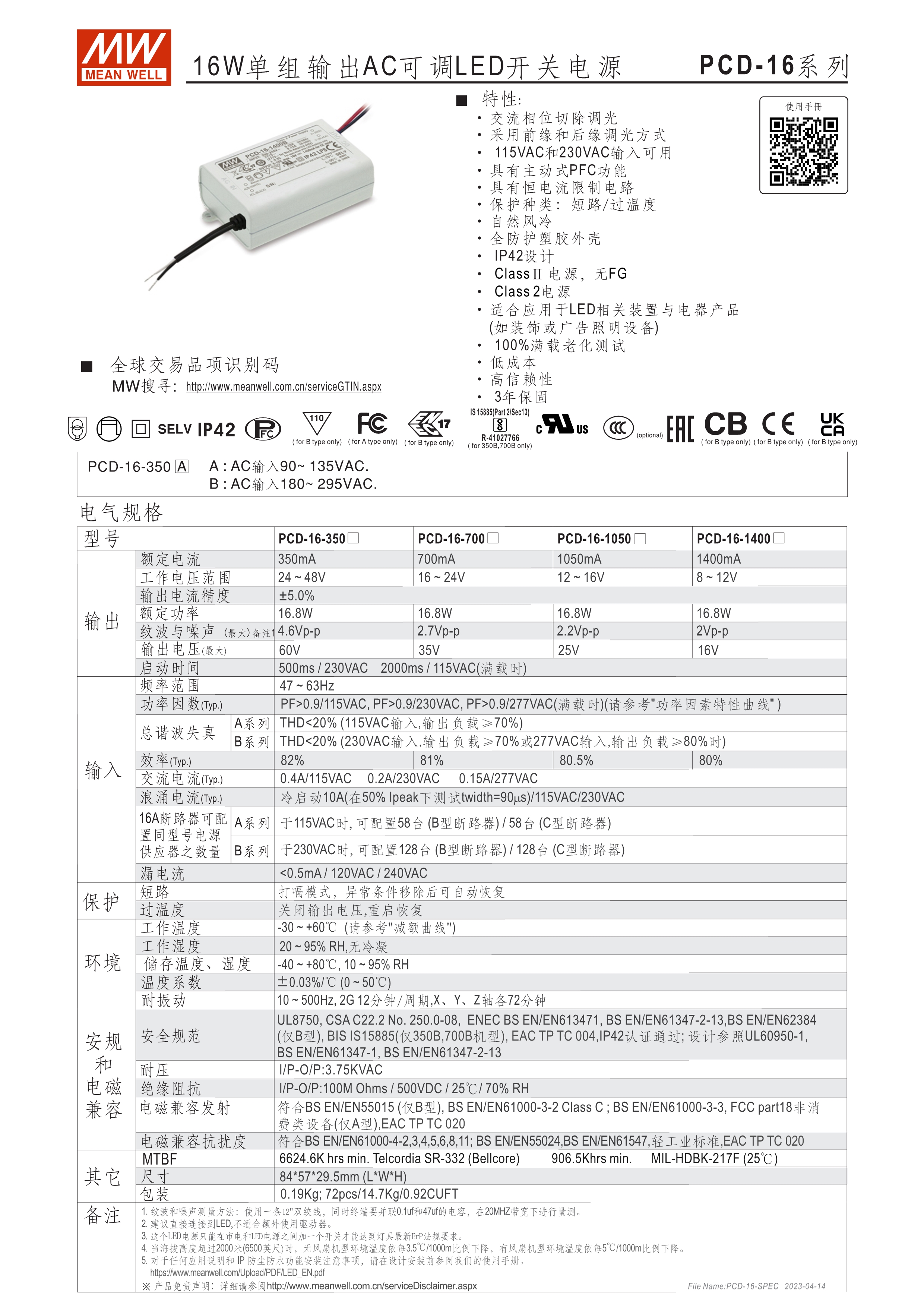 16/25W: 90~135VAC或180~295VAC 40/60W: 180~295VAC 具備AC相切調(diào)光功能,可搭配前緣及后緣觸發(fā)之TRIAC調(diào)光器 使用 塑料外殼,IP42防護(hù)等級(jí) 內(nèi)建主動(dòng)式功率因子矯正功能(active PFC) Class II設(shè)計(jì),無(wú)FG 恒流設(shè)計(jì) 適合于LED室內(nèi)照明相關(guān)應(yīng)用