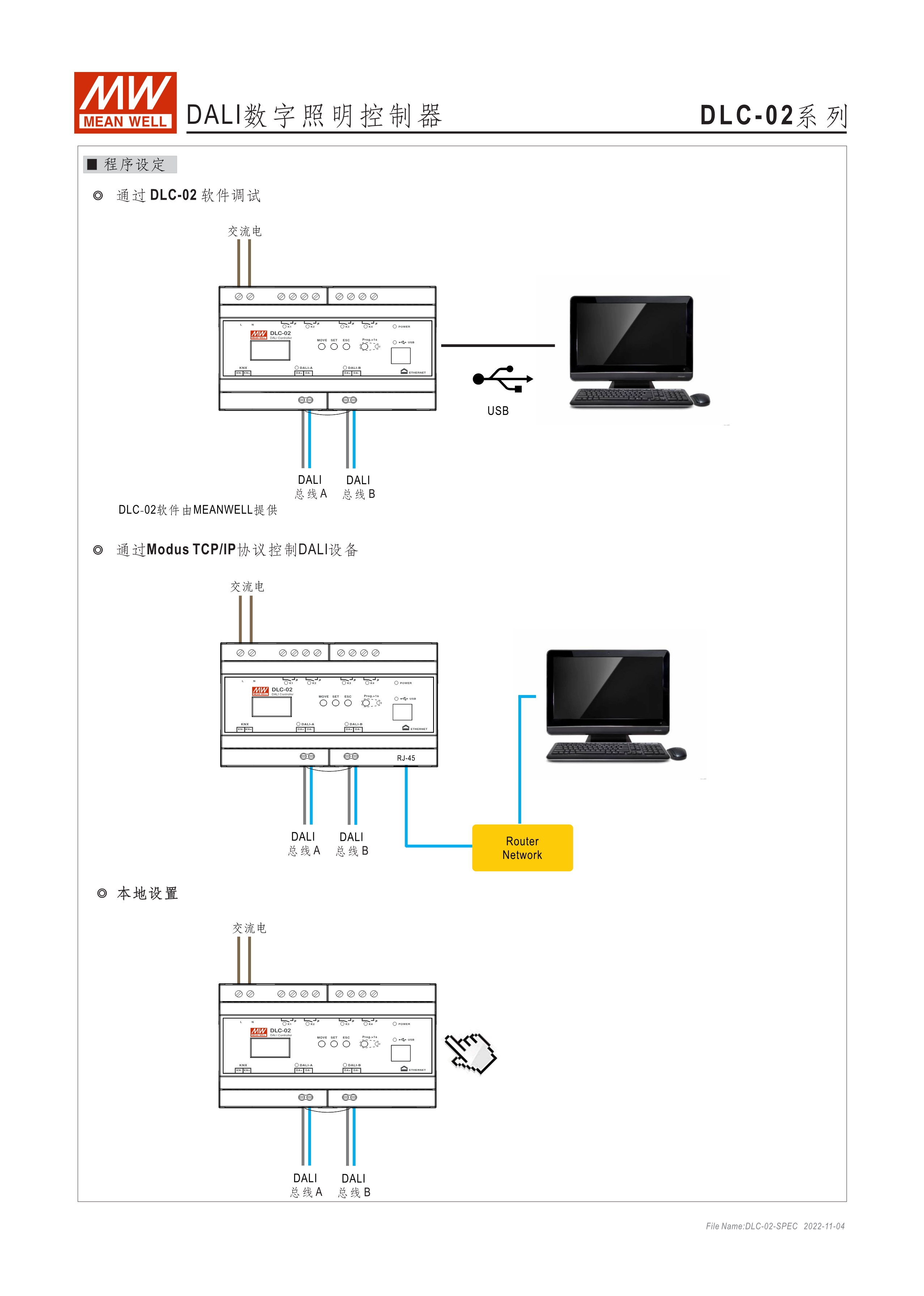 符合IEC 62386 DALI-2,Part 101/103/207/208/301/302/303/304標(biāo)準(zhǔn) 2組獨(dú)立DALI總線,可接Control Gear及Control Device搭配使用 4路可控繼電器,接觸容量5A,可當(dāng)電器開關(guān)或兩組電動(dòng)窗簾使用 可搭配DLC軟體做現(xiàn)場(chǎng)系統(tǒng)設(shè)定,或透過網(wǎng)路線從遠(yuǎn)端做修改設(shè)定 透過本體液晶顯示螢?zāi)患安倏匕粹o,可做簡(jiǎn)單設(shè)定和狀態(tài)查詢 內(nèi)建Timer晶片,可搭配DLC軟體做行程控制設(shè)定 通訊介面接口:RJ-45及KNX,可與其他樓宇自動(dòng)化系統(tǒng)做連線擴(kuò)充使用 采導(dǎo)軌式設(shè)計(jì),體積小巧僅8SU寬度(144x 90x 58.4mm)