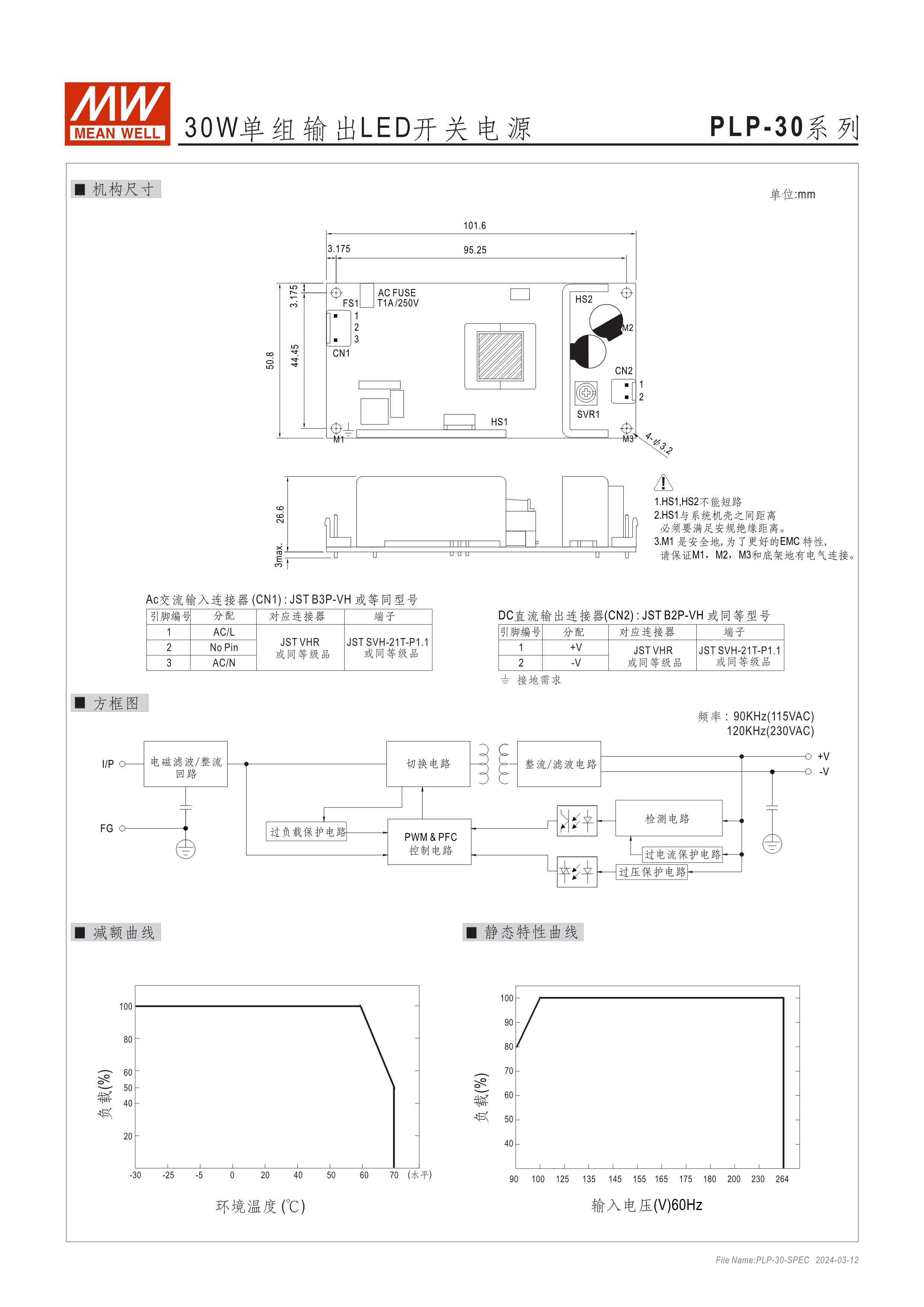 90~264VAC交流輸入, 內(nèi)建主動式功率 因子矯正功能(active PFC) 適合內(nèi)置于LED照明系統(tǒng)