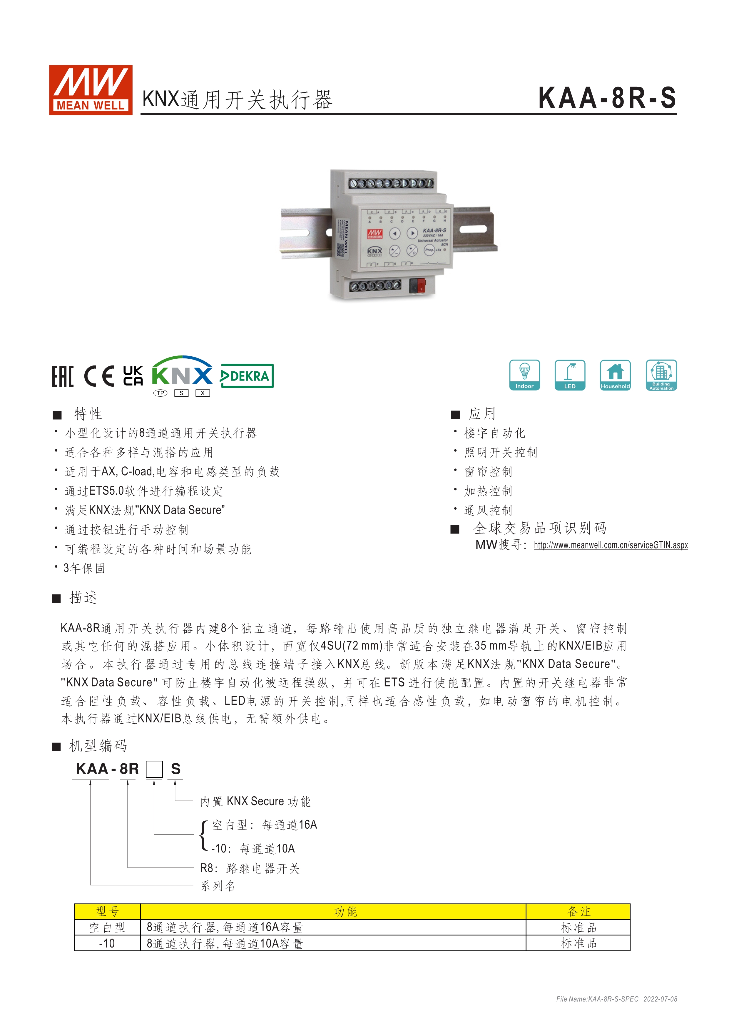 8通道小型化設(shè)計(jì)執(zhí)行器 適合于各式應(yīng)用與混搭模式 適用于AX,C-load,電容和電感類(lèi)型的負(fù)載 通過(guò)ETS5.0軟件編程 可通過(guò)按鈕進(jìn)行手動(dòng)控制 可編程各種時(shí)間和場(chǎng)景功能 3年保固