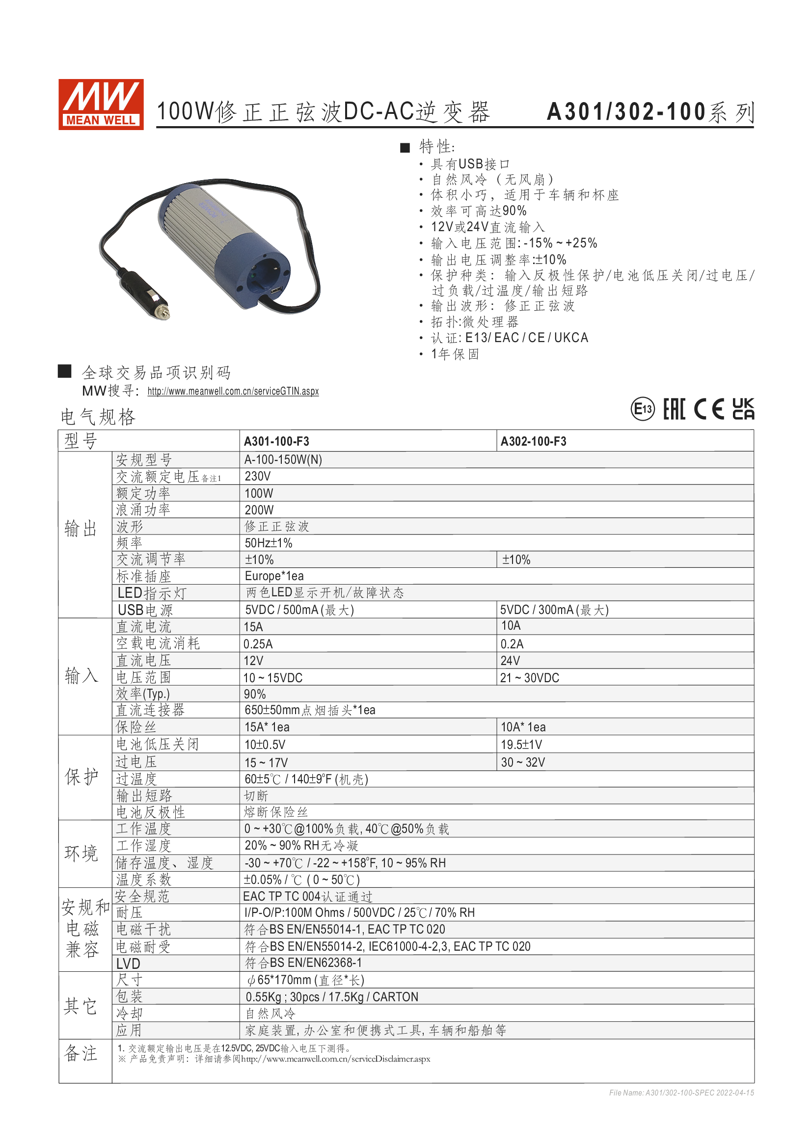 功能特性 修正正弦波, 適用於阻性負(fù)載 經(jīng)濟型 1年保固期