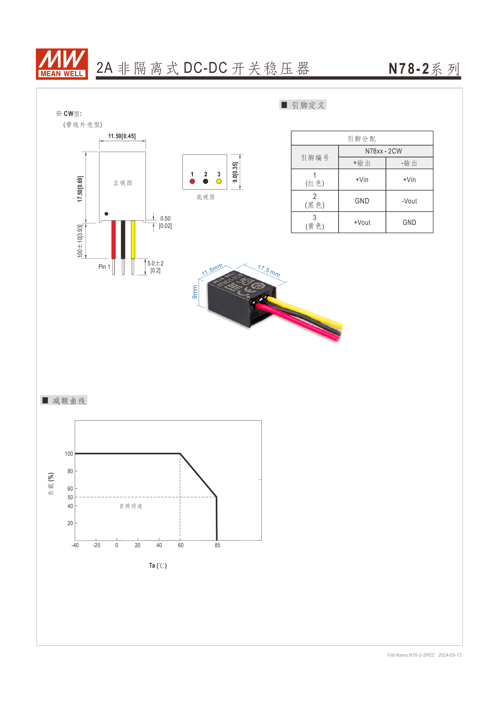Pin-out 兼容 LM78xx/LM79xx 線性穩(wěn)壓器 效率高達(dá) 96%、無(wú)須散熱片 寬輸入范圍最高可達(dá) 32V 支援負(fù)輸出 工作溫度范圍:-40 ~ +85oC 符合 BS EN/EN55032 輻射 B 類、無(wú)需另加組件 保護(hù)種類:短路/過(guò)負(fù)載/過(guò)溫度 3 年保固