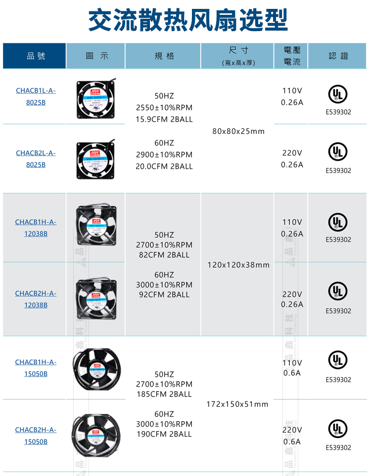 CHACB2L-A-8025B交流散熱風(fēng)扇 明緯聯(lián)源精密 工業(yè)用風(fēng)扇 UL認(rèn)證