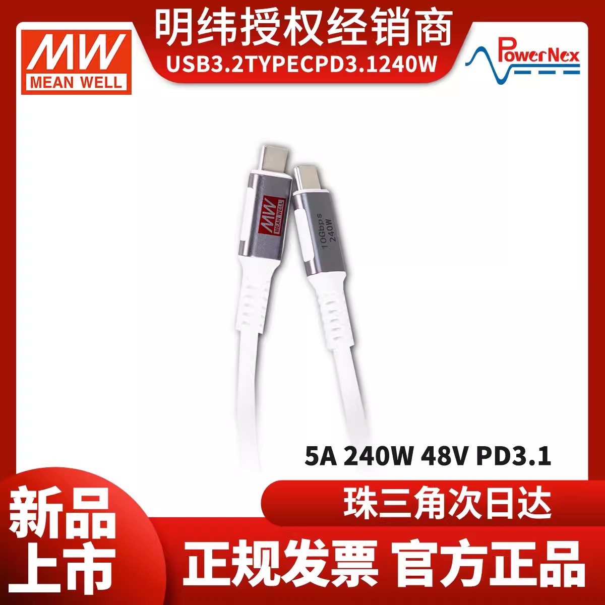 USB傳輸線 明緯聯(lián)源精密USB 3.2 GEN2 Type C 240W充電/傳輸線